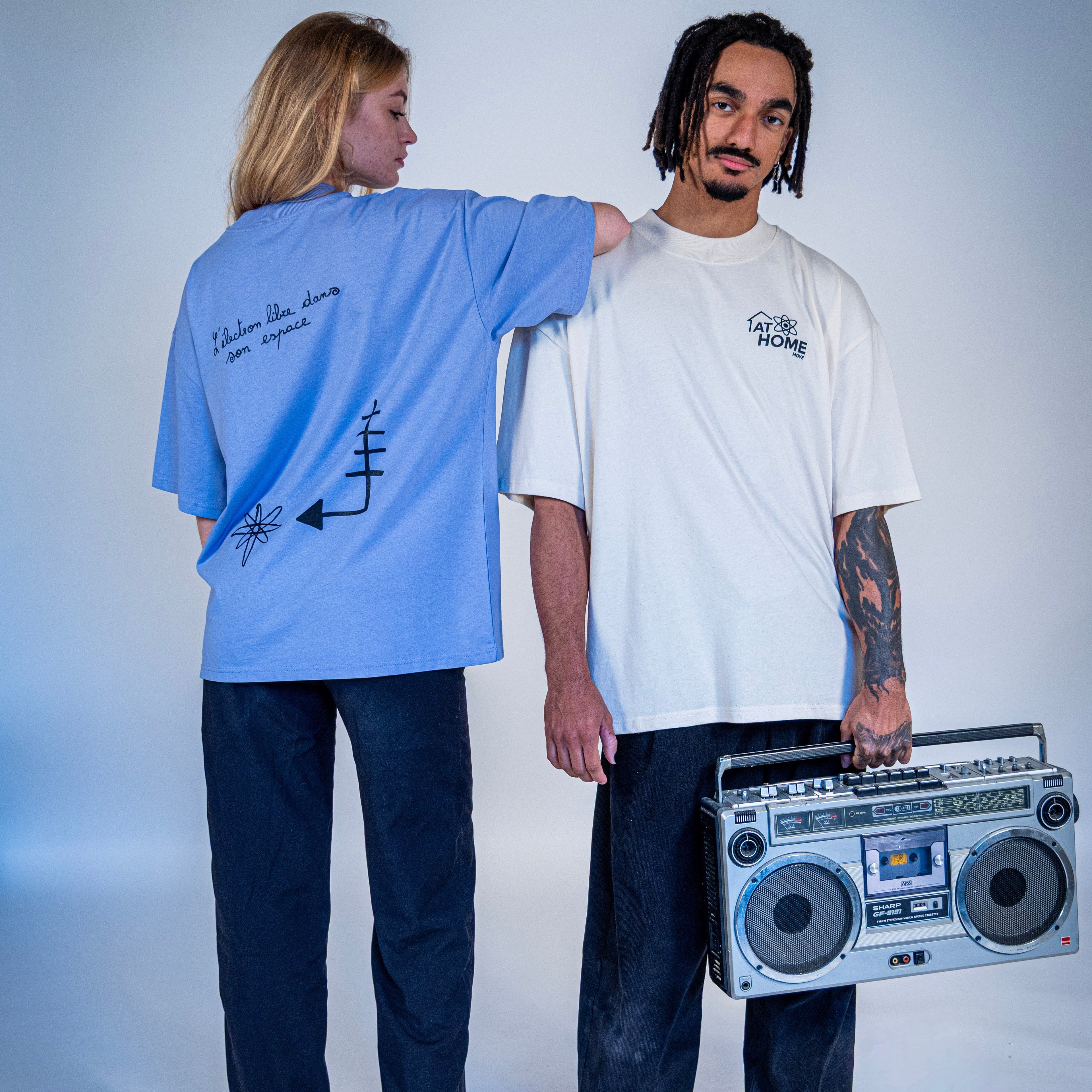 ATHOME MOVE est une marque abstraite qui parle du mouvement chez les danseurs, les représentant comme des électrons évoluant dans leur propre espace.